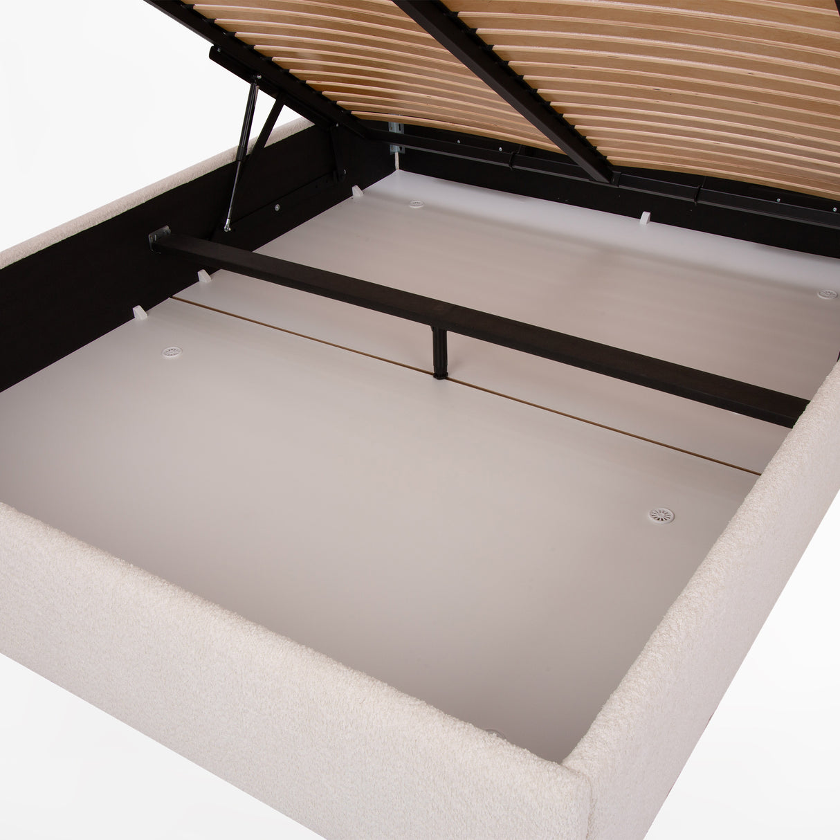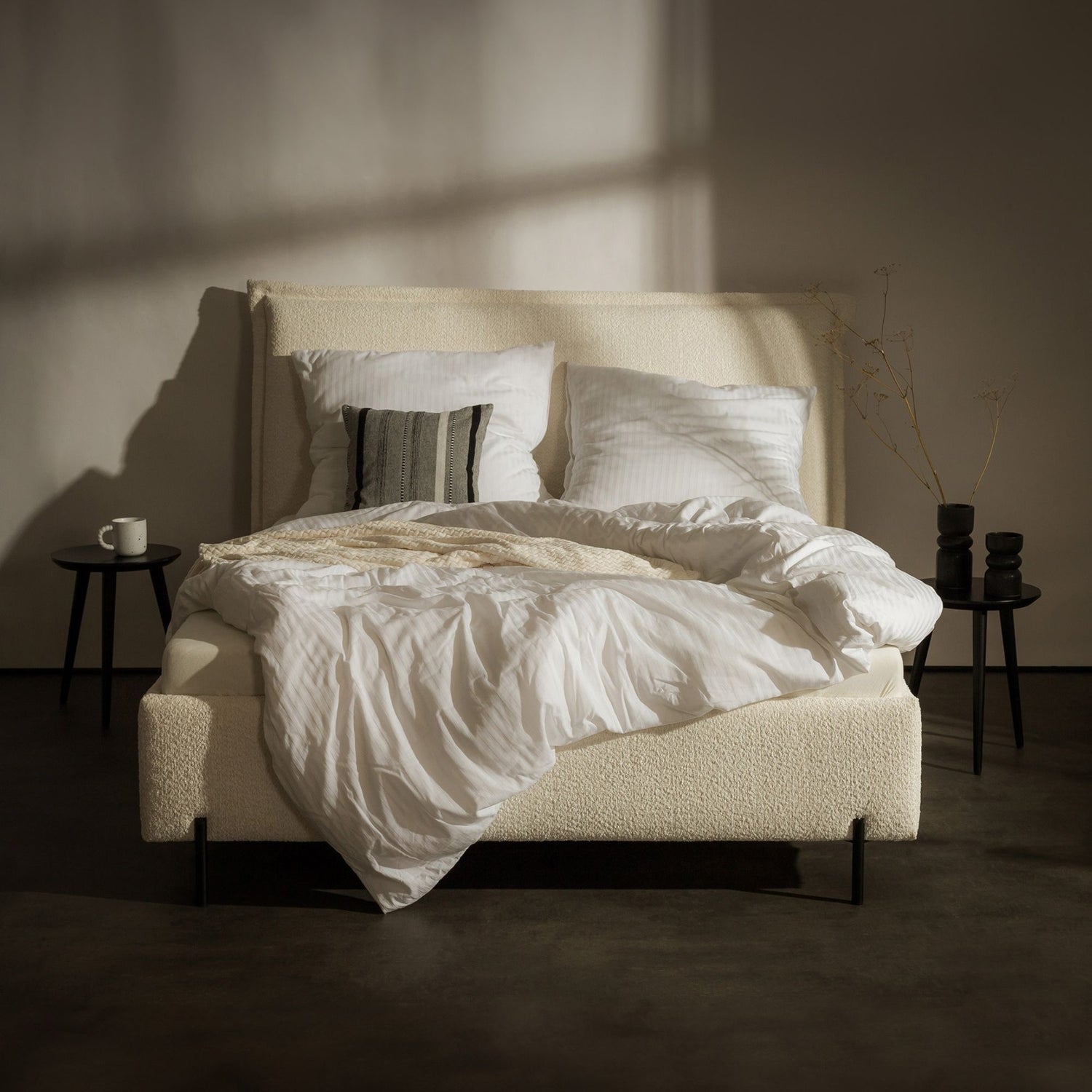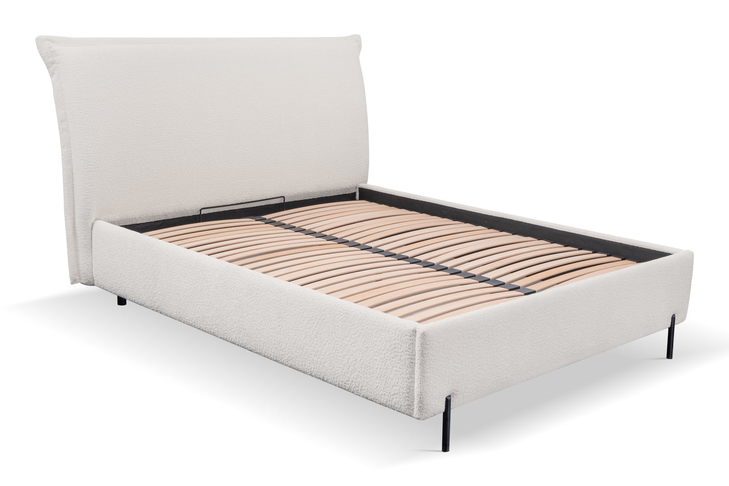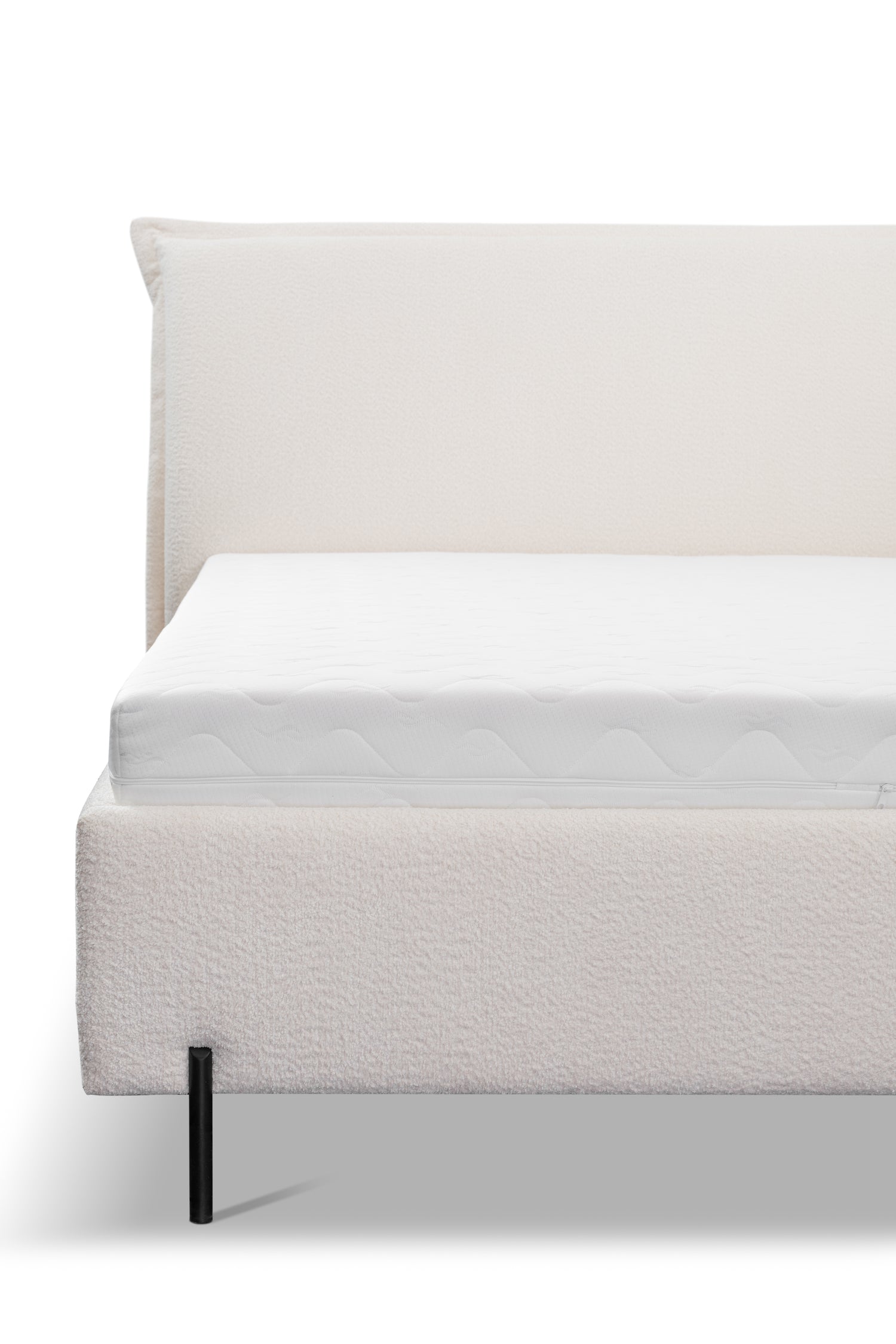 Stylishly designed bedroom bed with a bedding box. It is possible to choose the fabric and the size of the bed according to the given measurements. The mattress can be purchased separately.