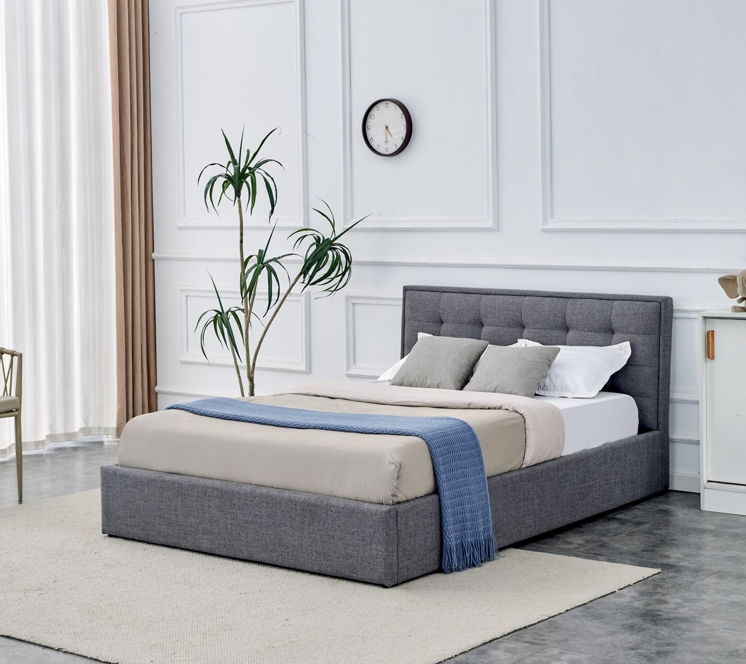 dimensions: 151/217/100 cm, bed with bedding container , material: cloth, color: grey, * bed without mattress, optional mattress POLARIS 140 or SYRIUSZ 140