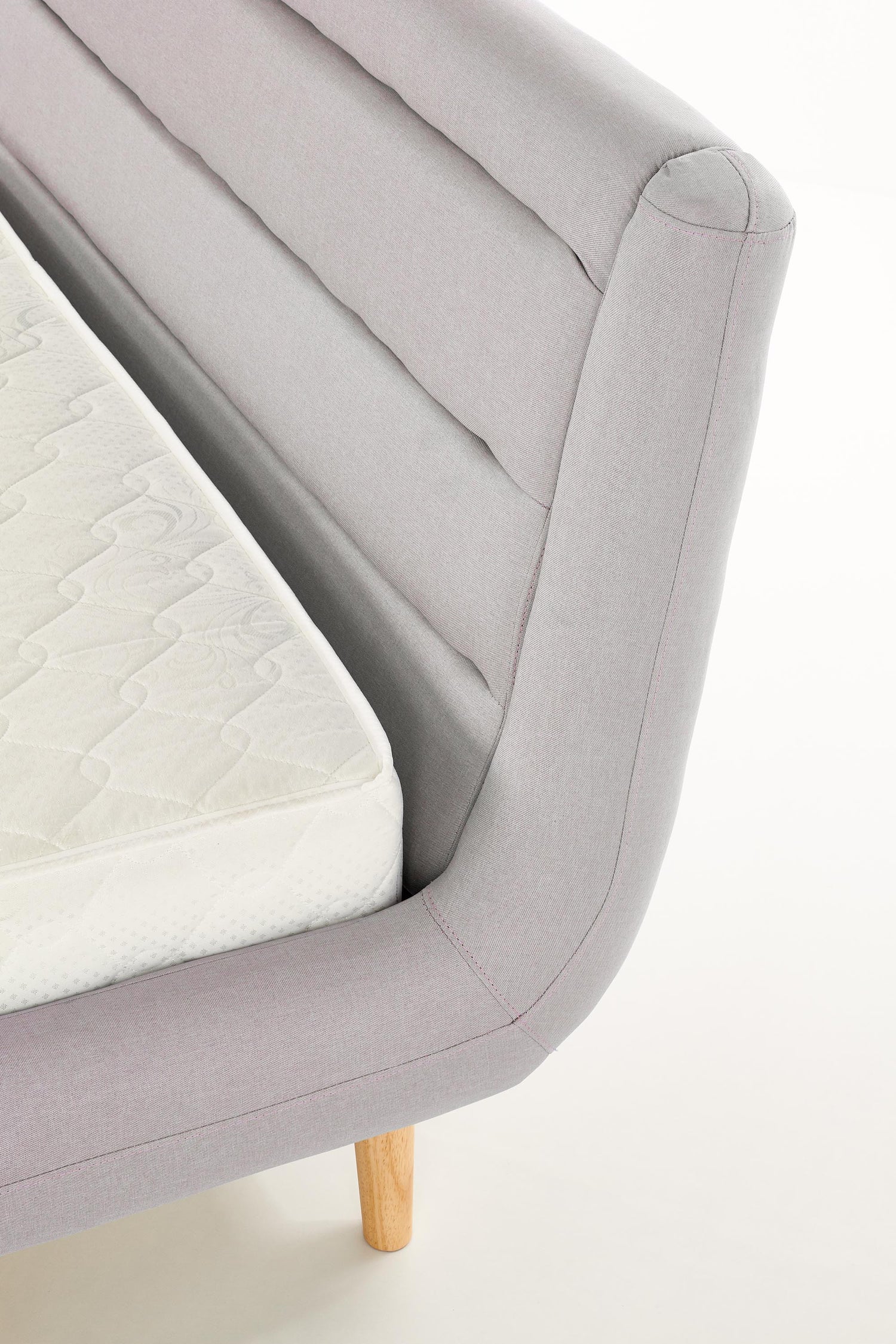 dimensions: 179/232/86 cm, material: cloth / solid wood, color: cloth - light grey, wood - natural