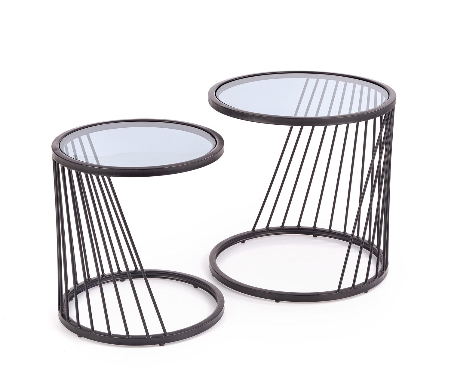 dimensions: 50/50 cm oraz 42/45 cm, material: glass / powder coated steel, color: smoked / black