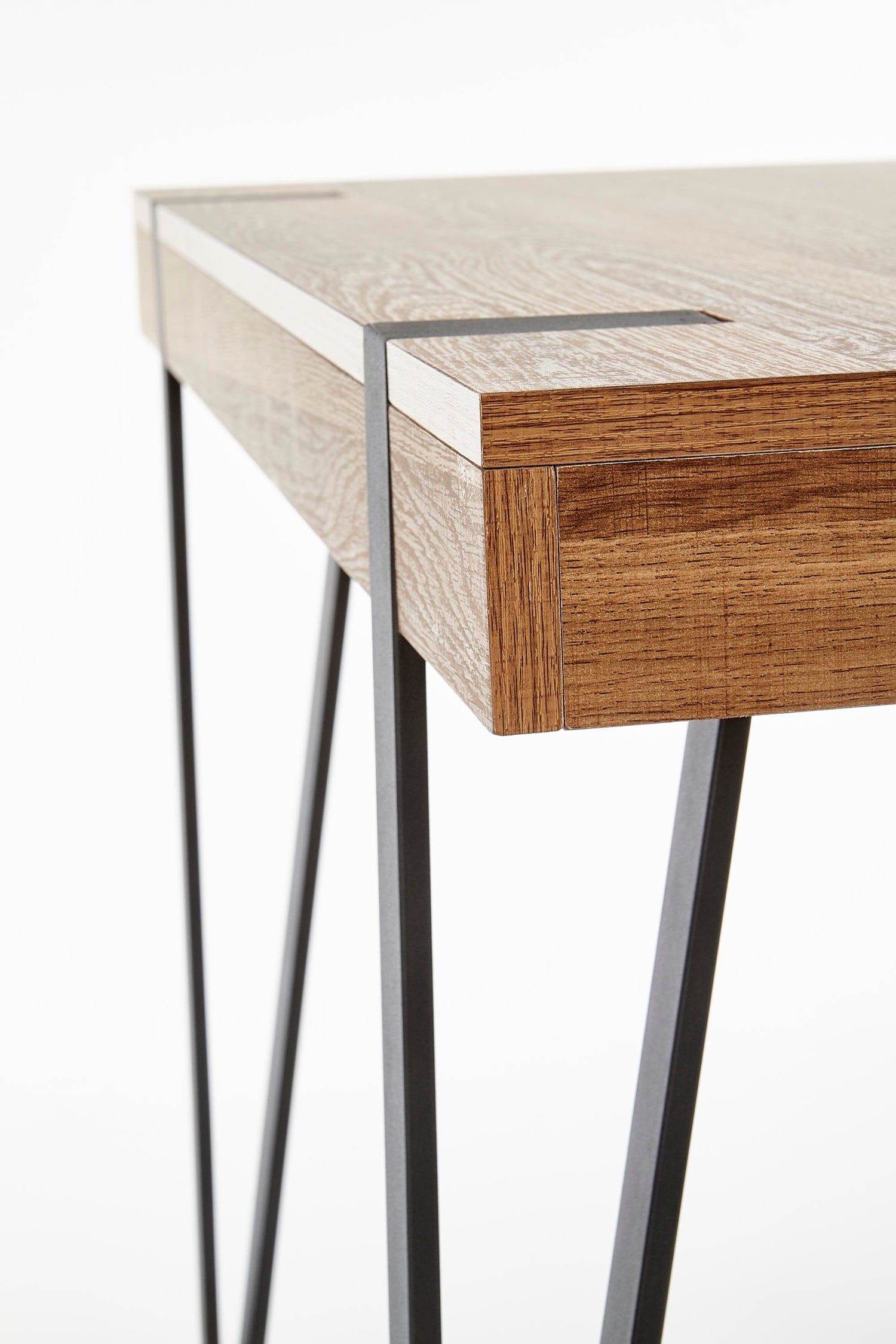 dimensions: 110/55/76 cm, material: laminated MDF / powder coated steel, color: honey walnut / black