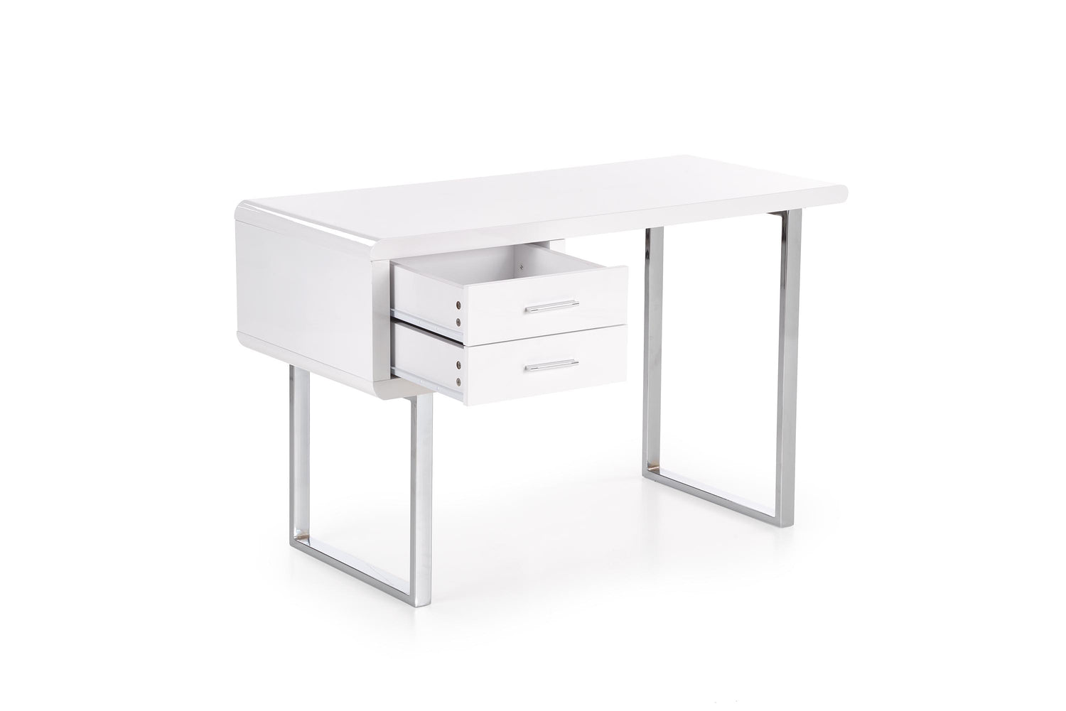 dimensions: 120/55/76 cm, material: high gloss lacquered MDF / chrome steel, color: white