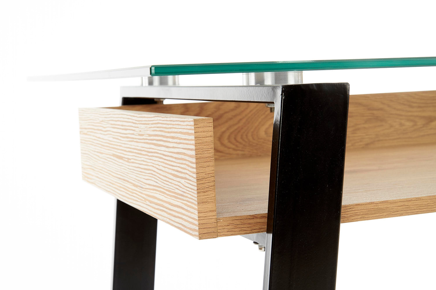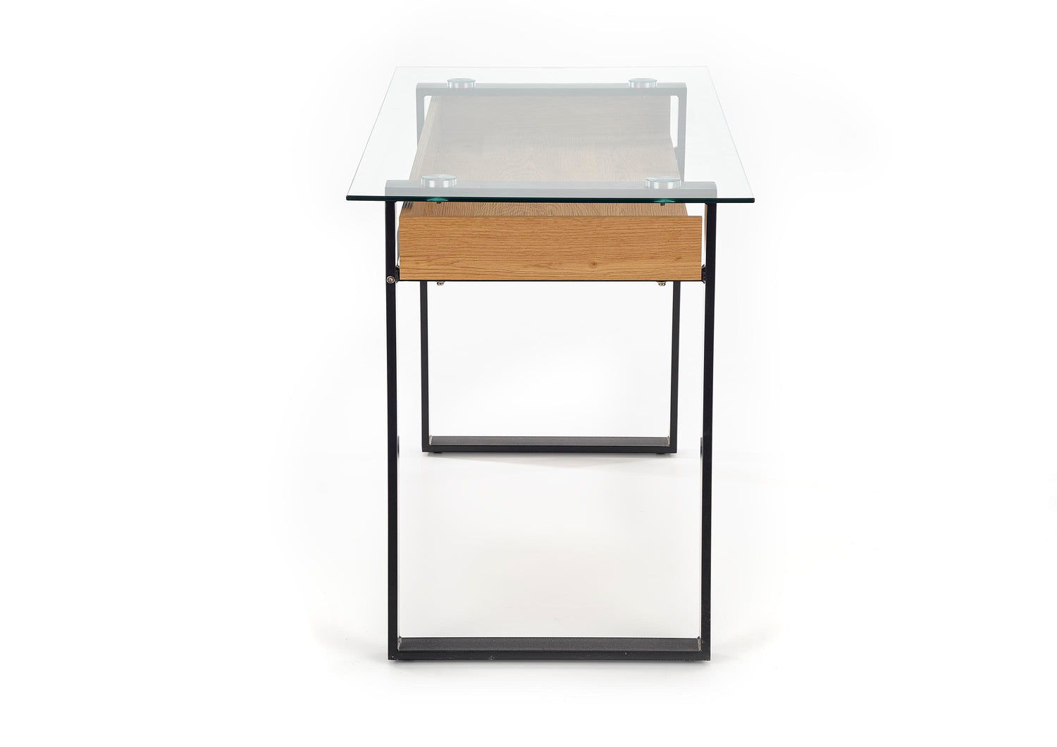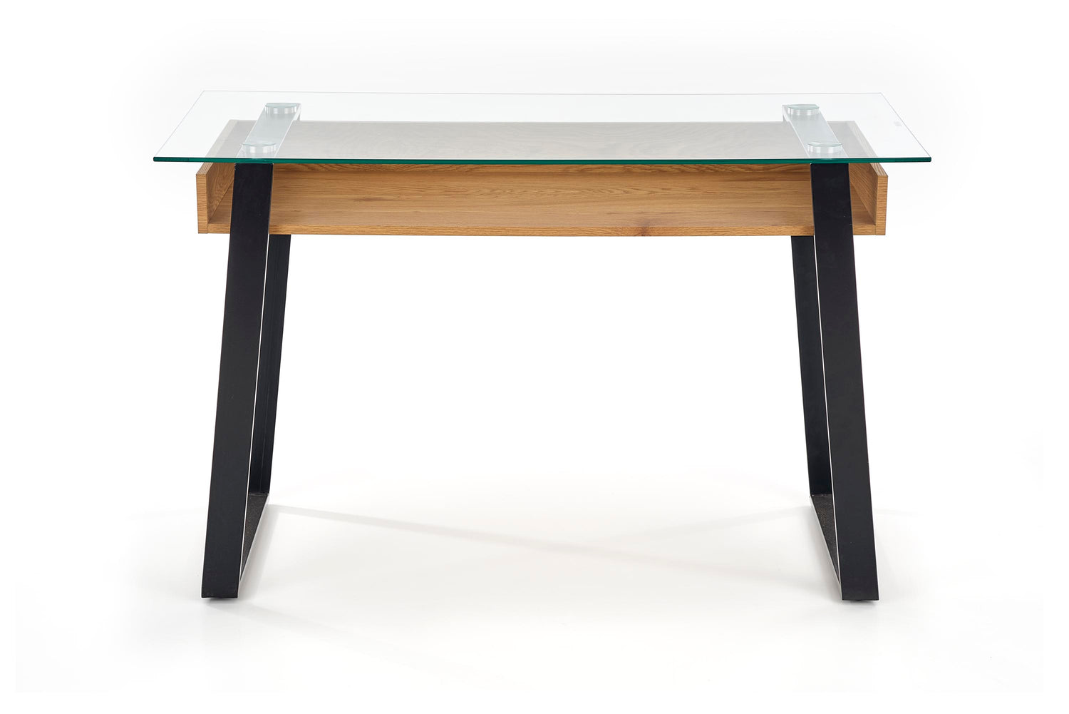dimensions: 120/60/75 cm, material: glass / laminated MDF / powder coated steel, color: golden oak / black