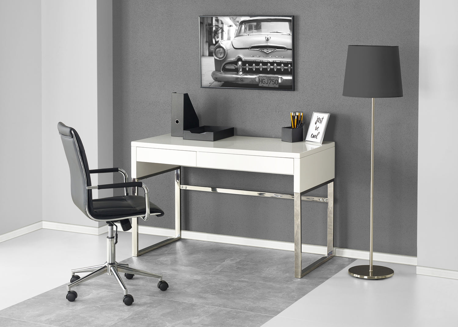 120/60/76 cm, material: high gloss lacquered MDF / chrome steel, color: white