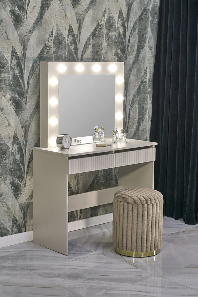 dimensions: 94/43/140 cm, material: mirror / laminated chipboard / laminated MDF / LED lights, color: cashmere