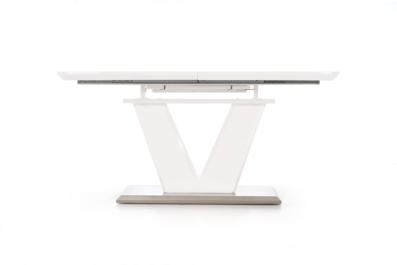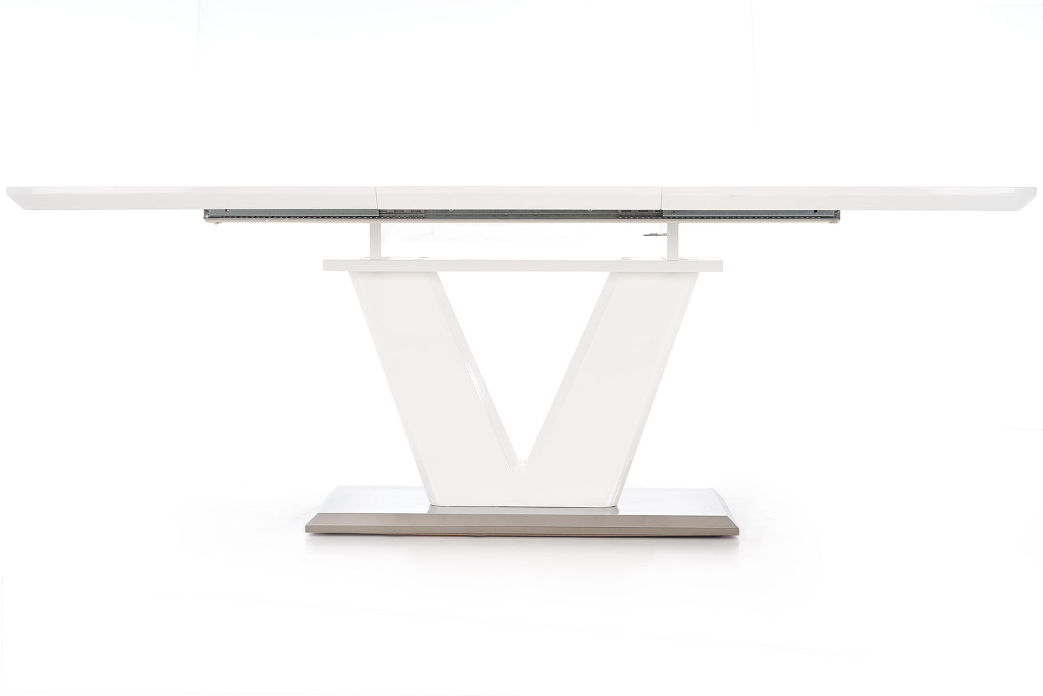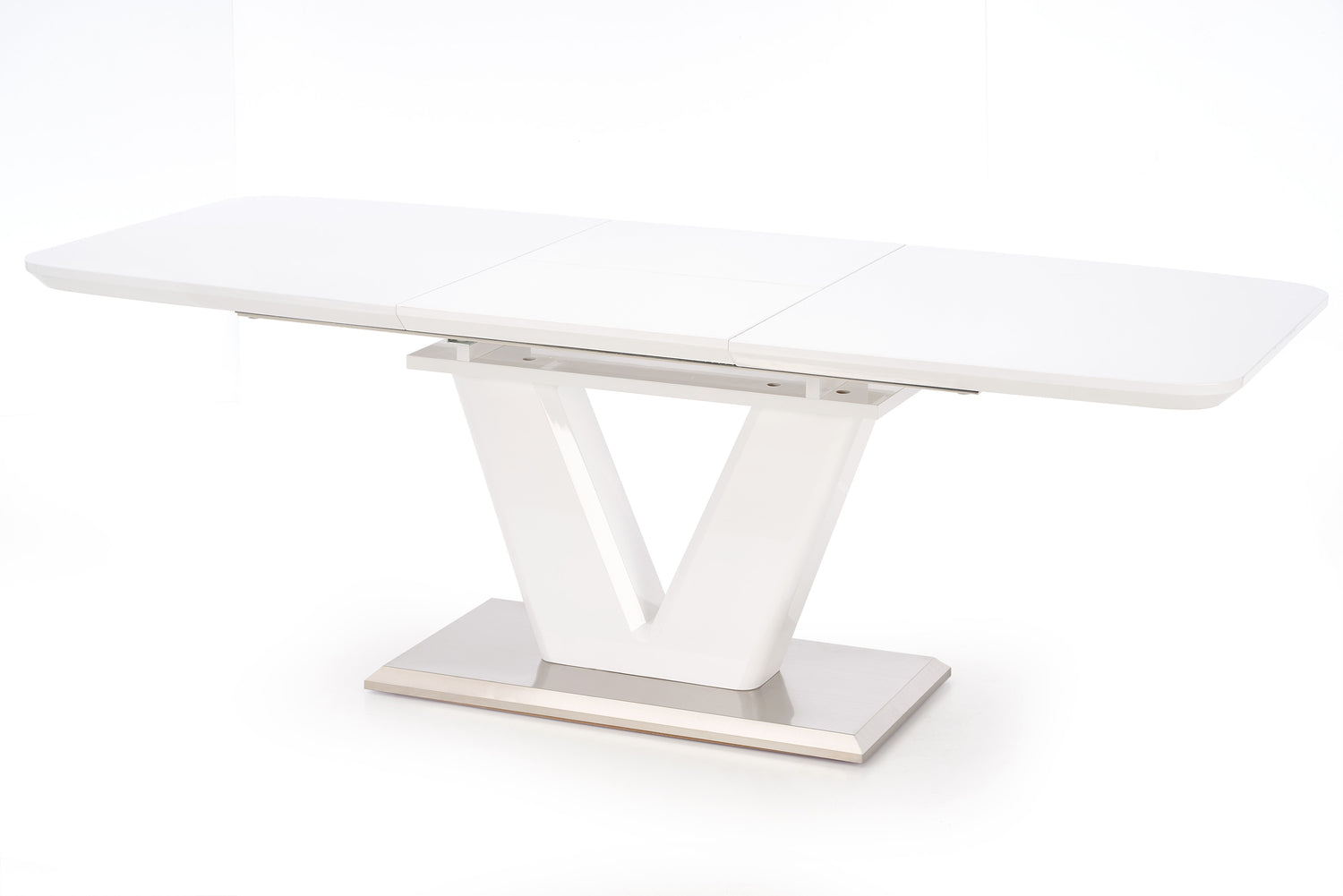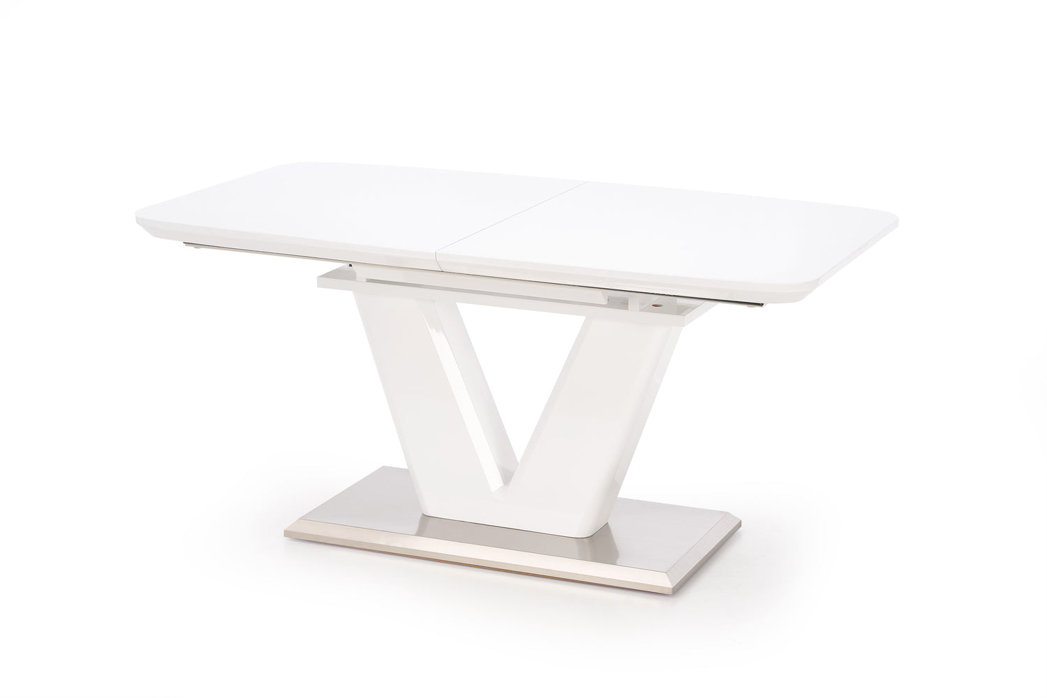 extension table, dimensions: 160-220/90/77 cm, material: lacquered MDF / stainless steel, color: white
