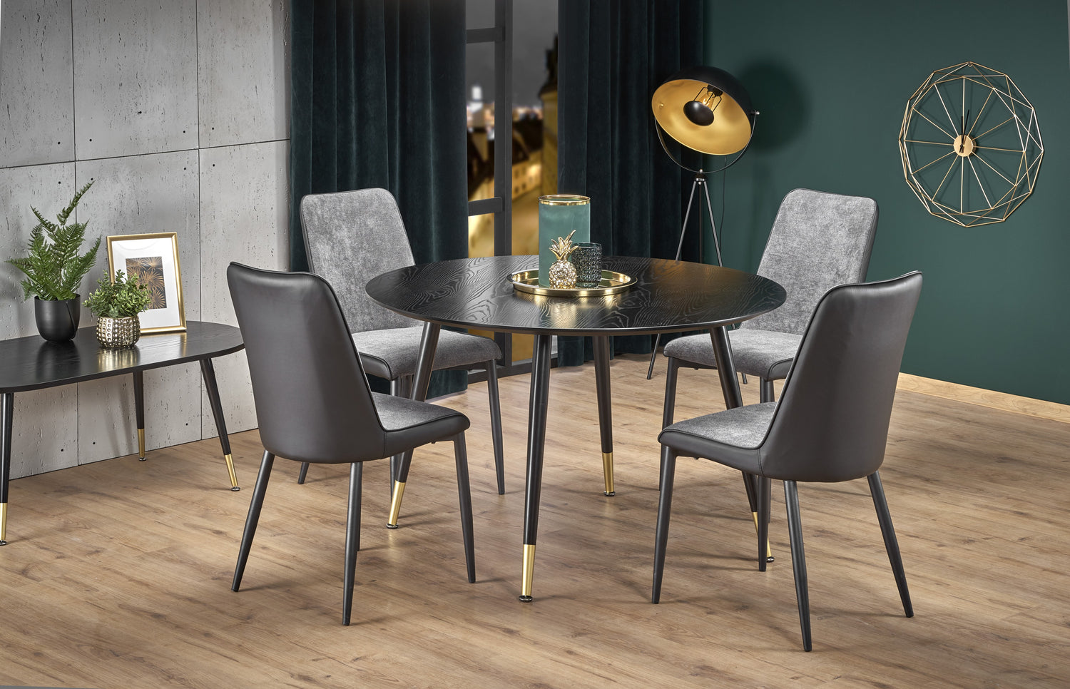 dimensions: o120/75 cm, material: lacquered MDF / powder coated steel / chrome steel, color: top - black, legs - black / gold