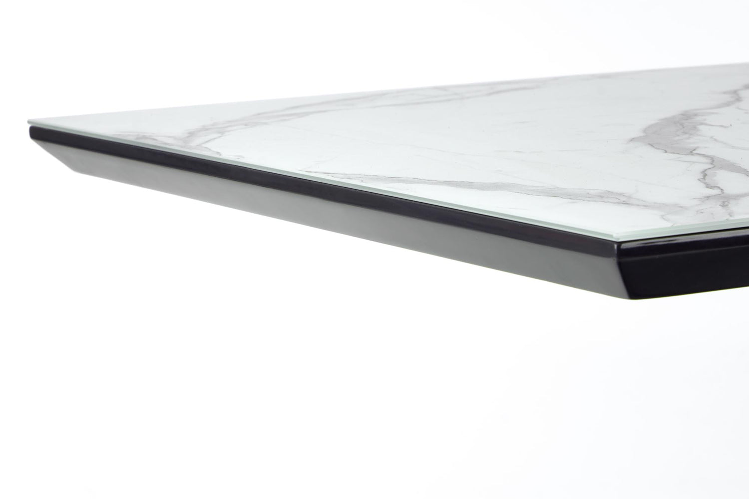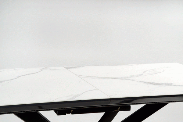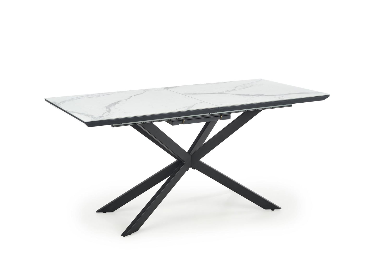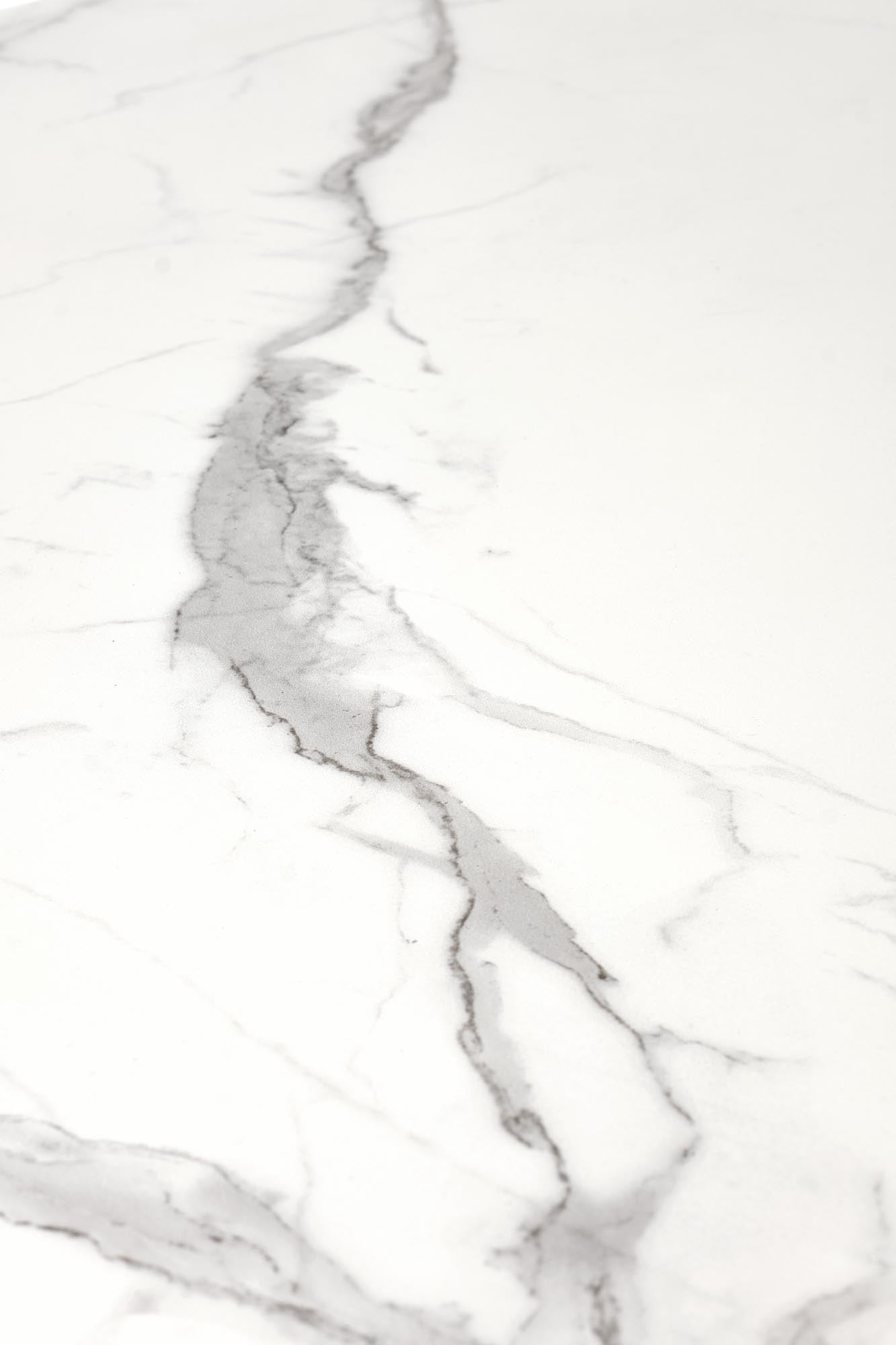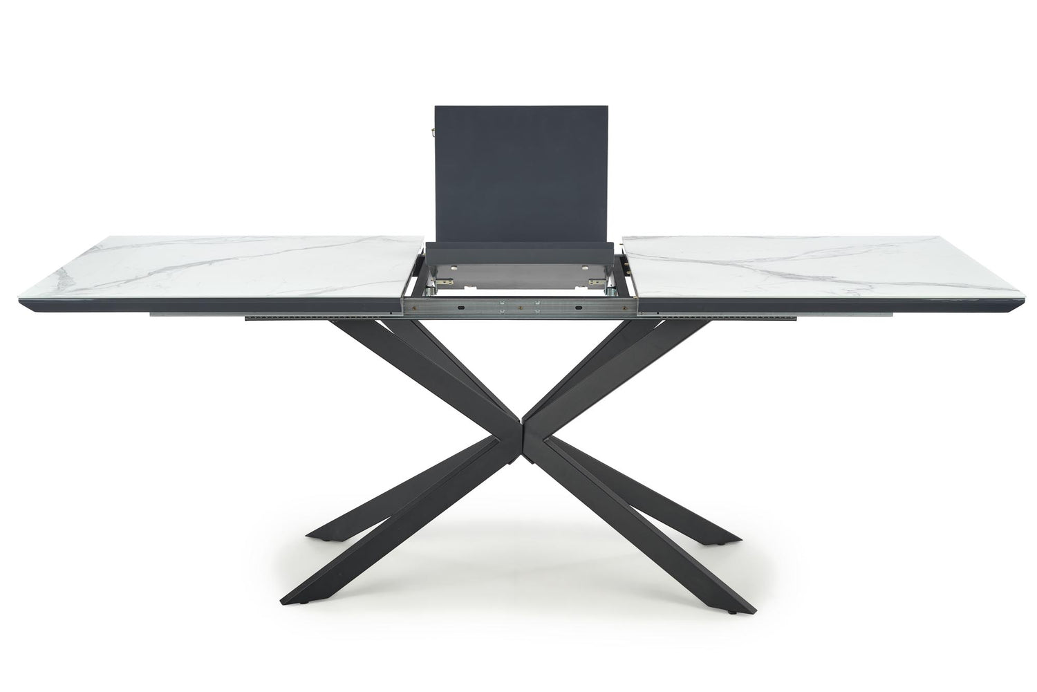 extension table, dimensions: 160-200/90/76 cm, material: ceramic / lacquered MDF / powder coated steel, color: top - white marble / dark grey, legs - black