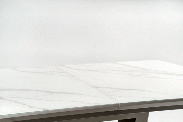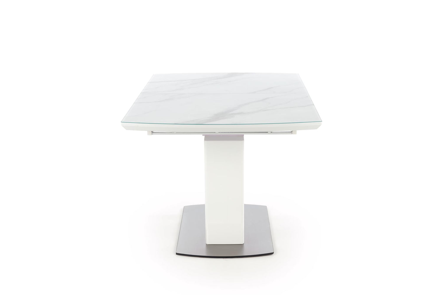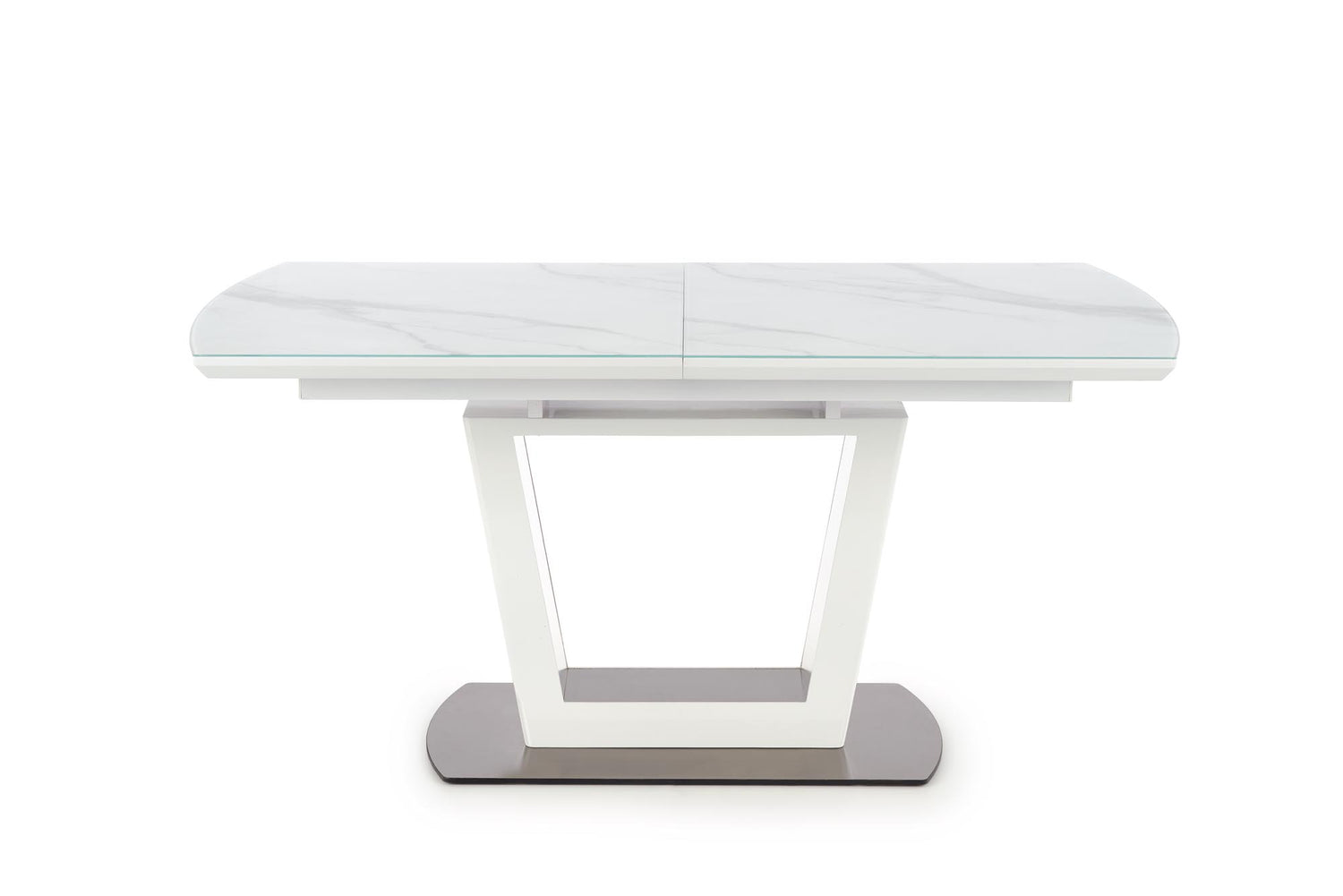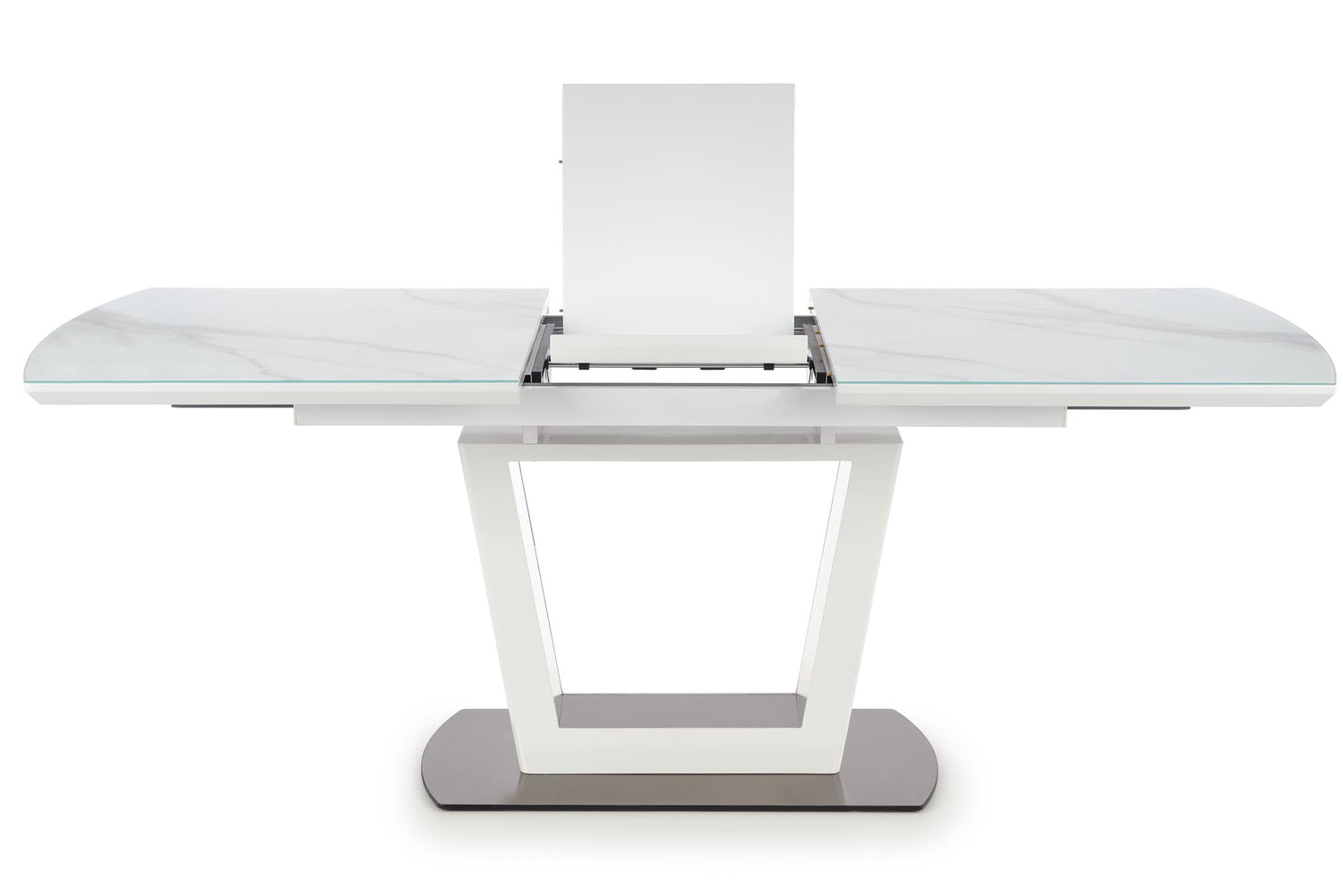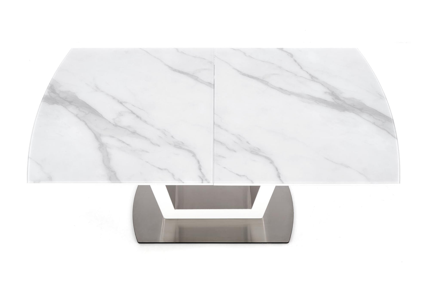 extension table, dimensions: 160-200/90/76 cm, material: glass / lacquered MDF / stainless steel, color: white marble - white