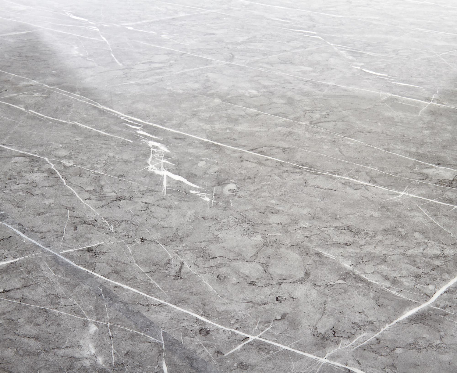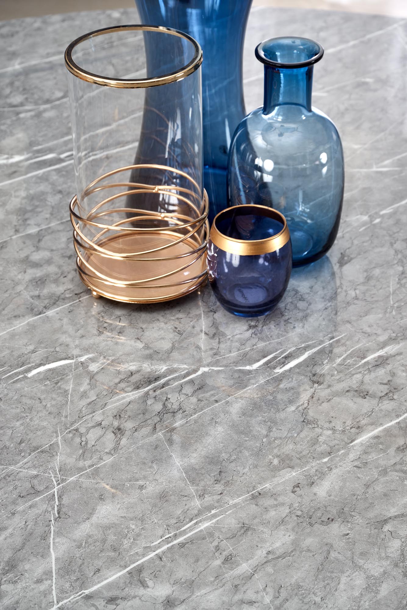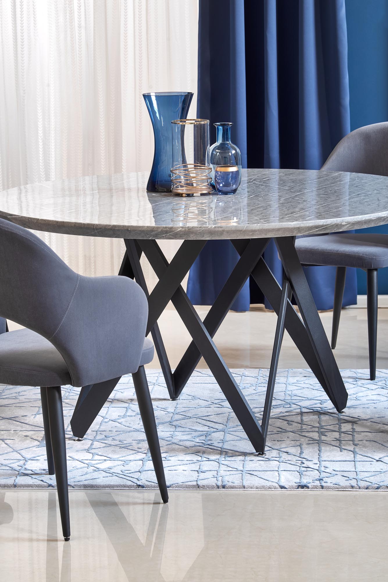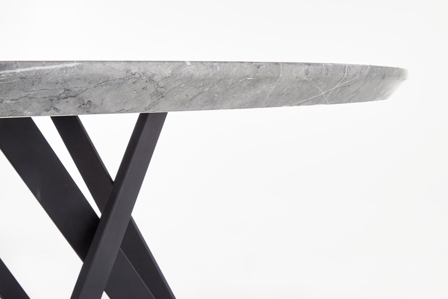 dimensions: o140/77 cm, material: laminated MDF / powder coated steel, color: top - grey marble, legs - black