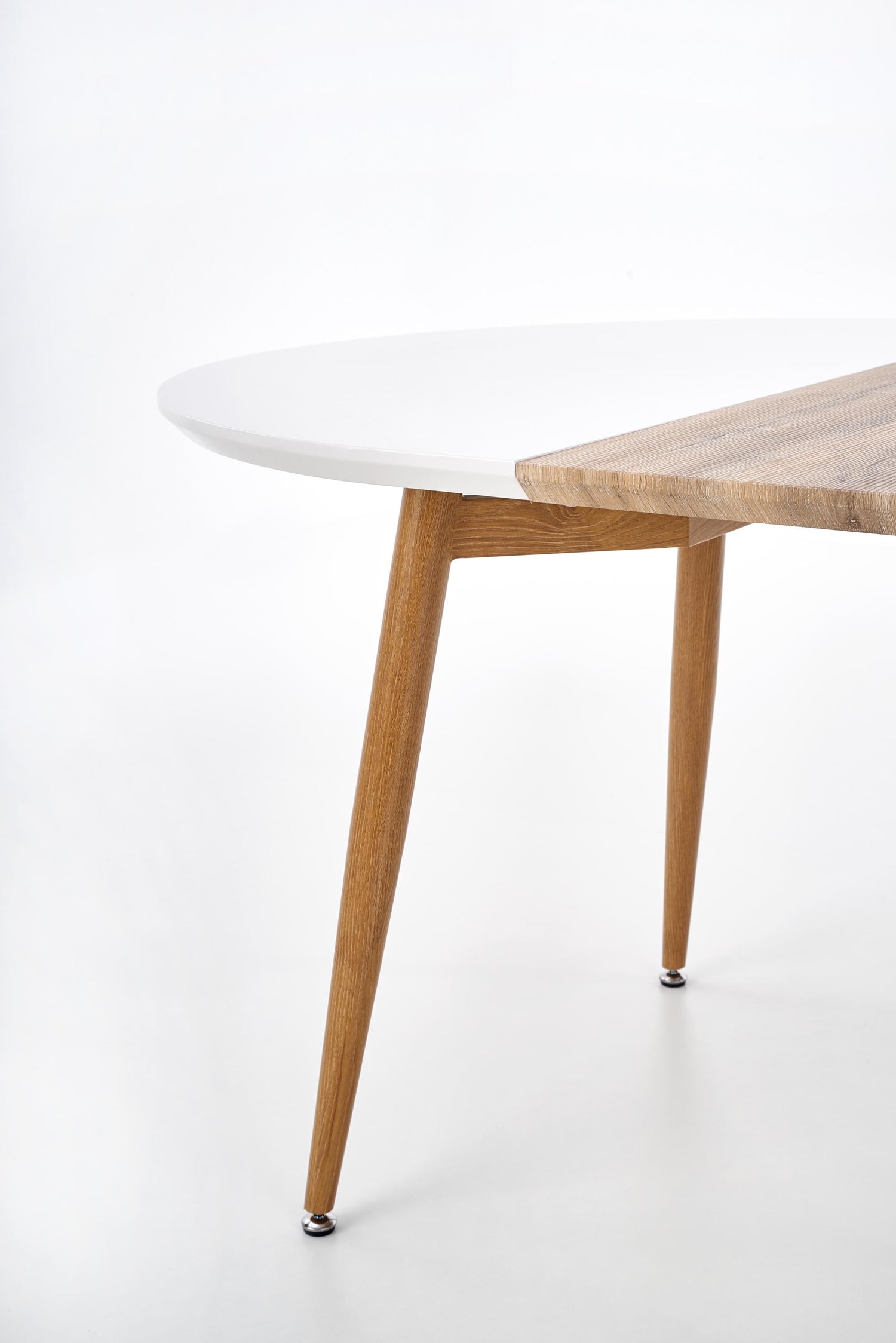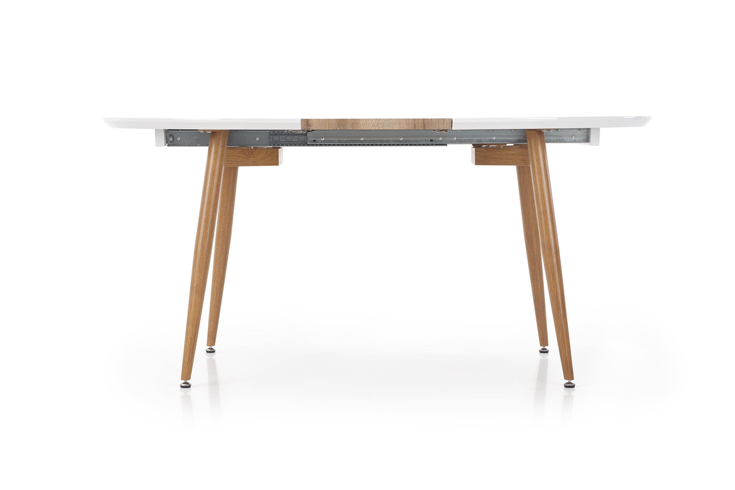extension table, dimensions: 120-200/100/75 cm, material: lacquered MDF / laminated MDF / painted steel, color: top - white / honey oak, legs - honey oak