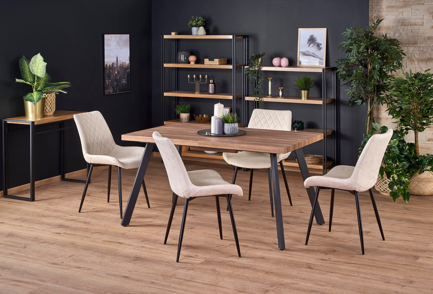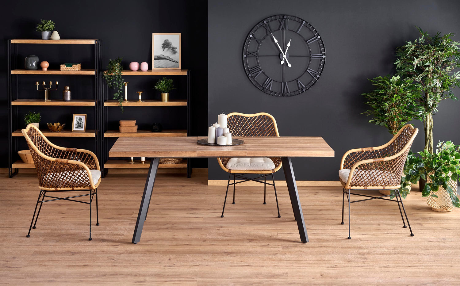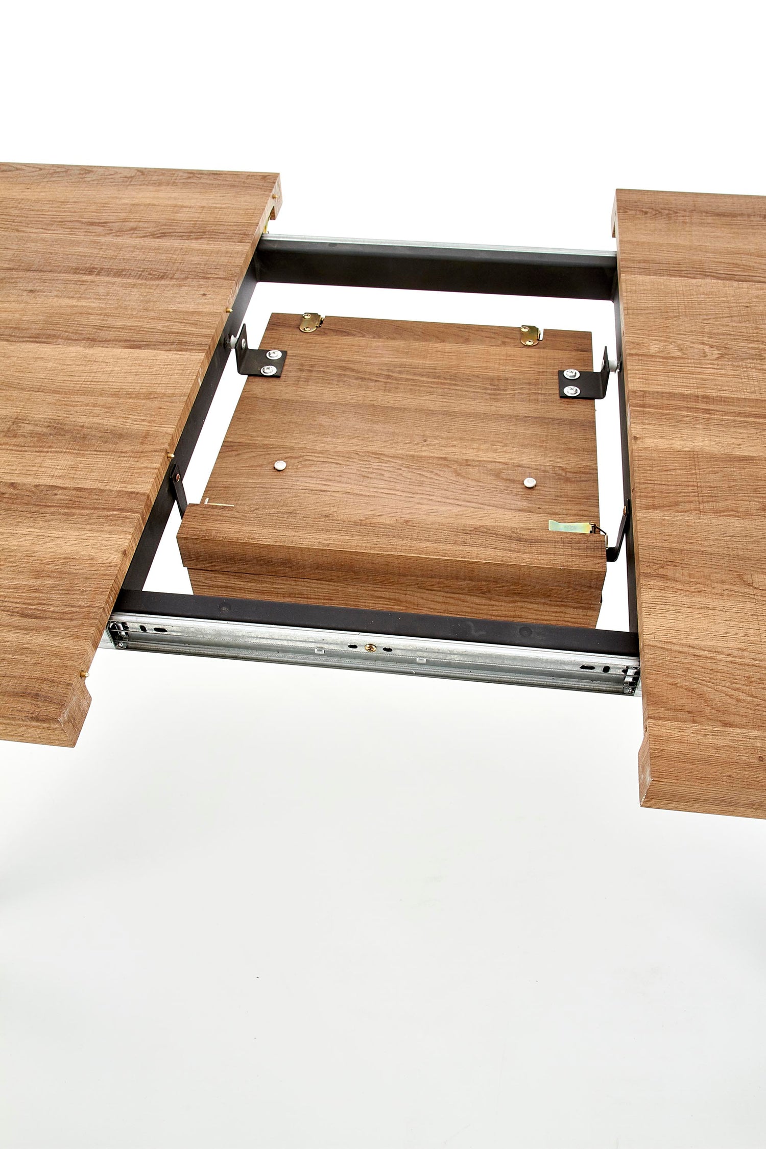 dimensions: 140÷180/85/76 cm, extension table, material: laminated MDF / powder coated steel, color: top - honey walnut, legs - black