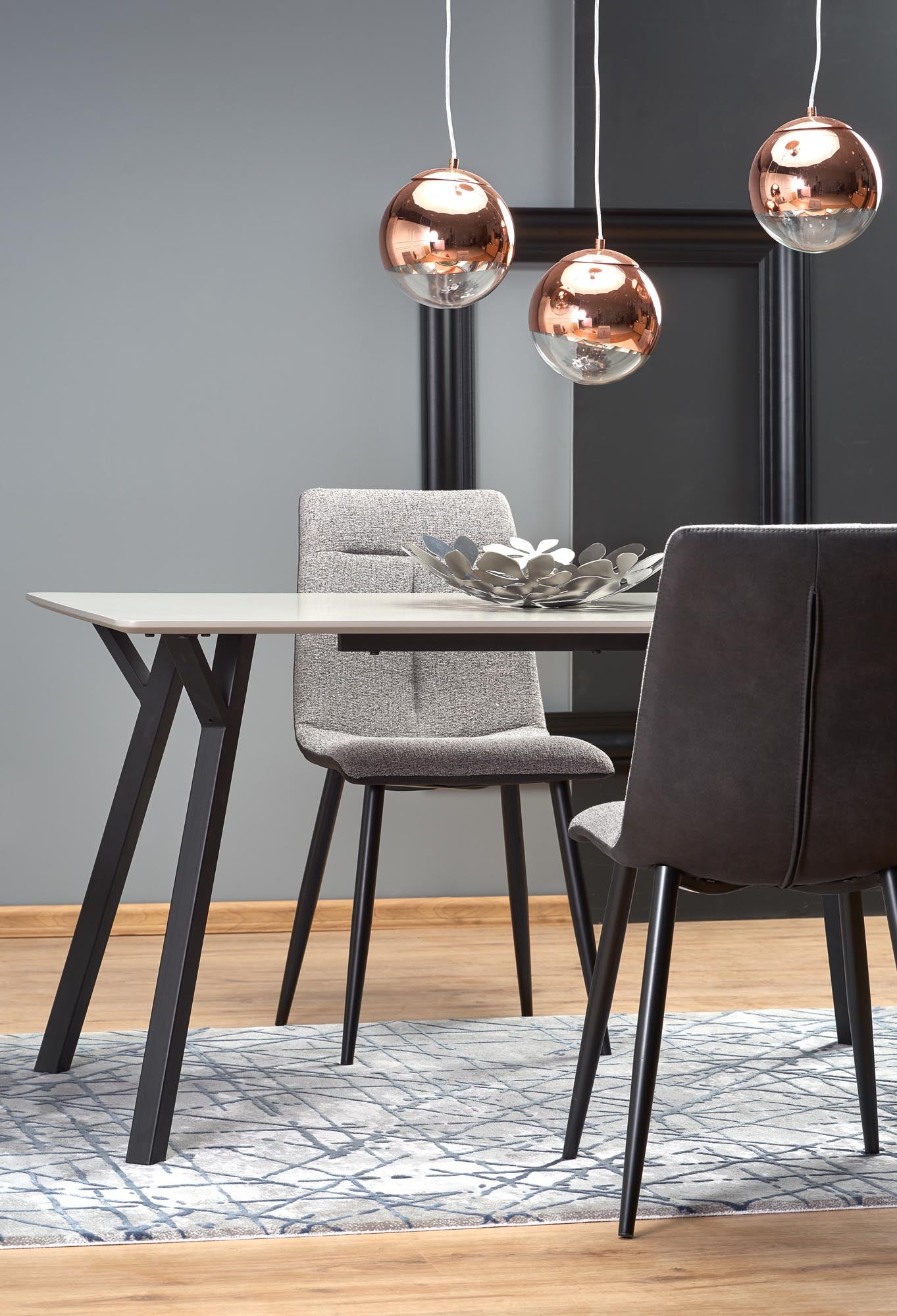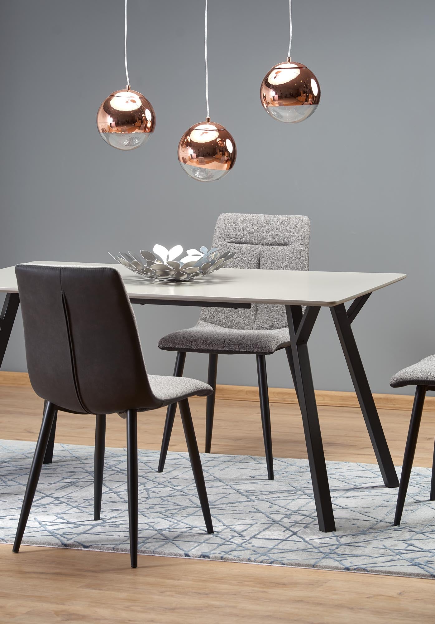 dimensions: 140/80/74 cm, material: lacquered MDF / powder coated steel, color: top - light grey, legs - black