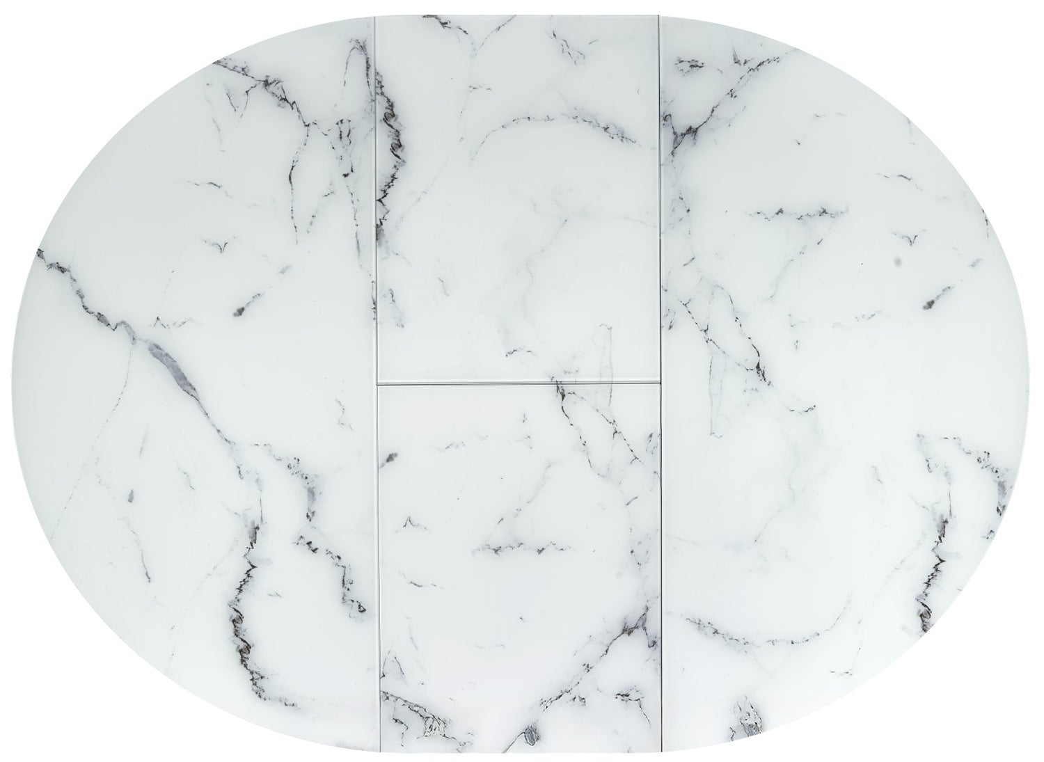 extension table, dimensions: 130-180/130/76 cm, material: glass / lacquered MDF / powder coated steel, color: top - white marble, legs - black