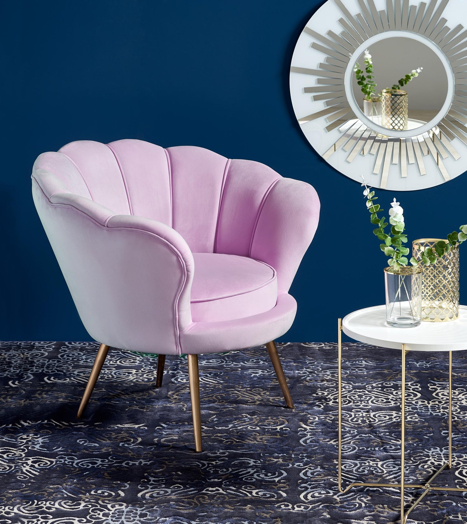 dimensions: 94/74/83/46 cm, material: cloth / chrome steel, color: upholstery - purple, legs - gold