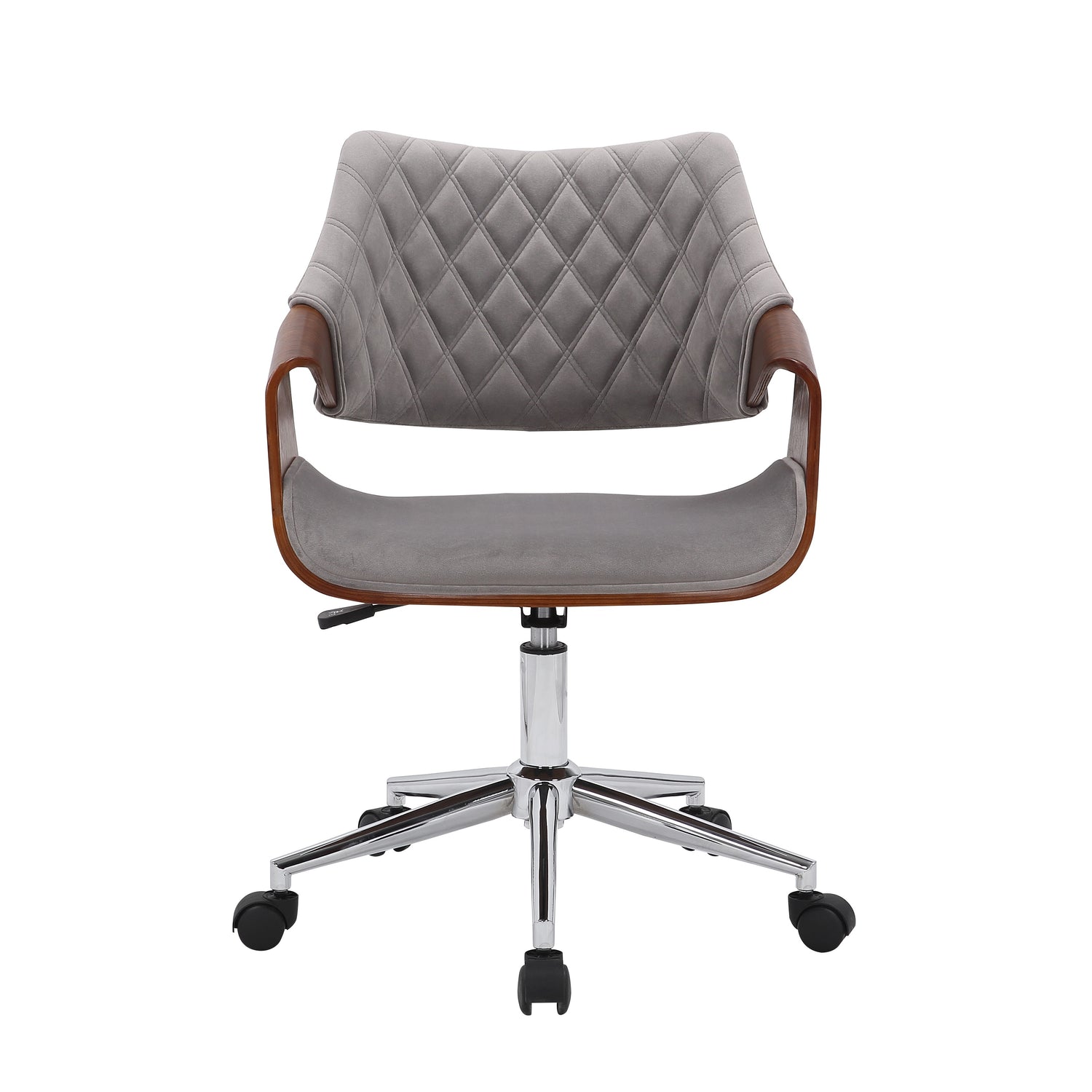dimensions: 80-90/58/64/45-55 cm, simple mechanism, material: bent plywood / velvet cloth, color: walnut / grey