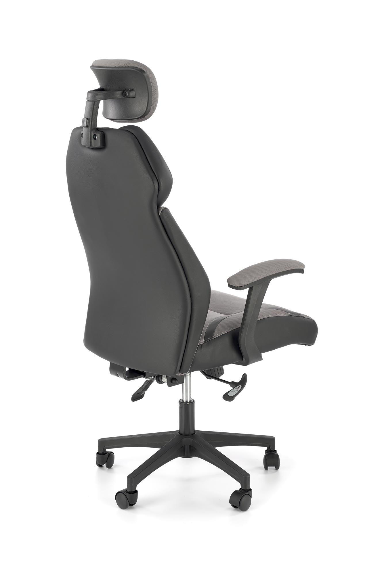 dimensions: 65/70/120-128/45-53 cm, multiblock mechanism, adjustable headrest, cloth / eco leather, color: grey / black