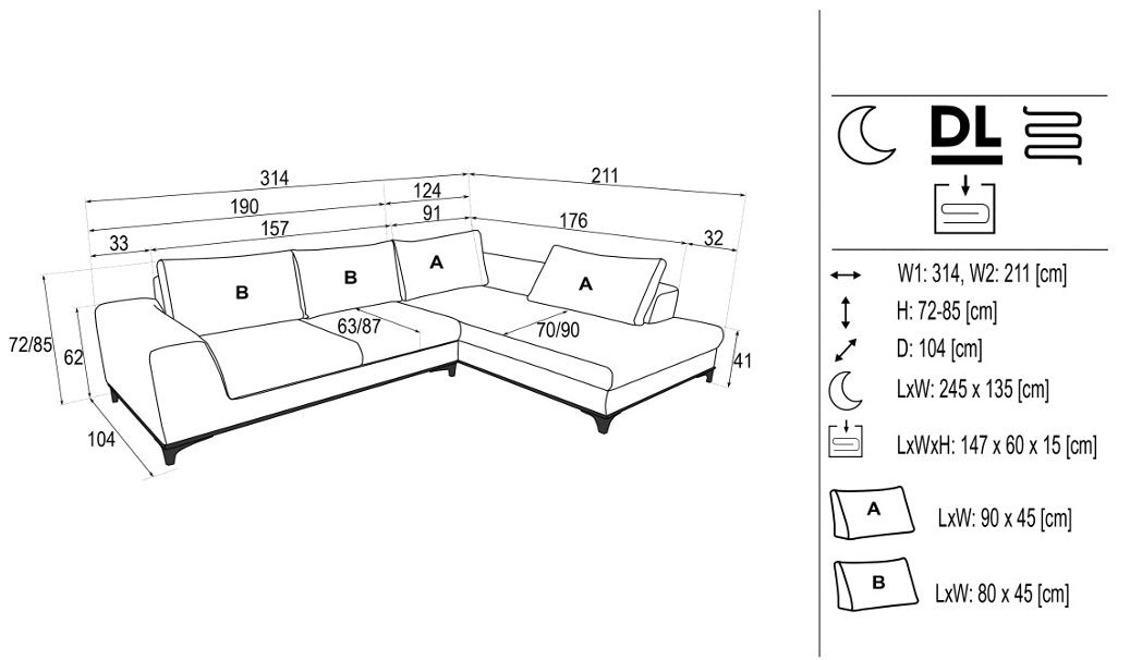 Modern design furniture with a stylish look that will perfectly fill the interior of any living room. The model also has a bedding box and a sleeping function, which undoubtedly increases the functionality of the furniture.