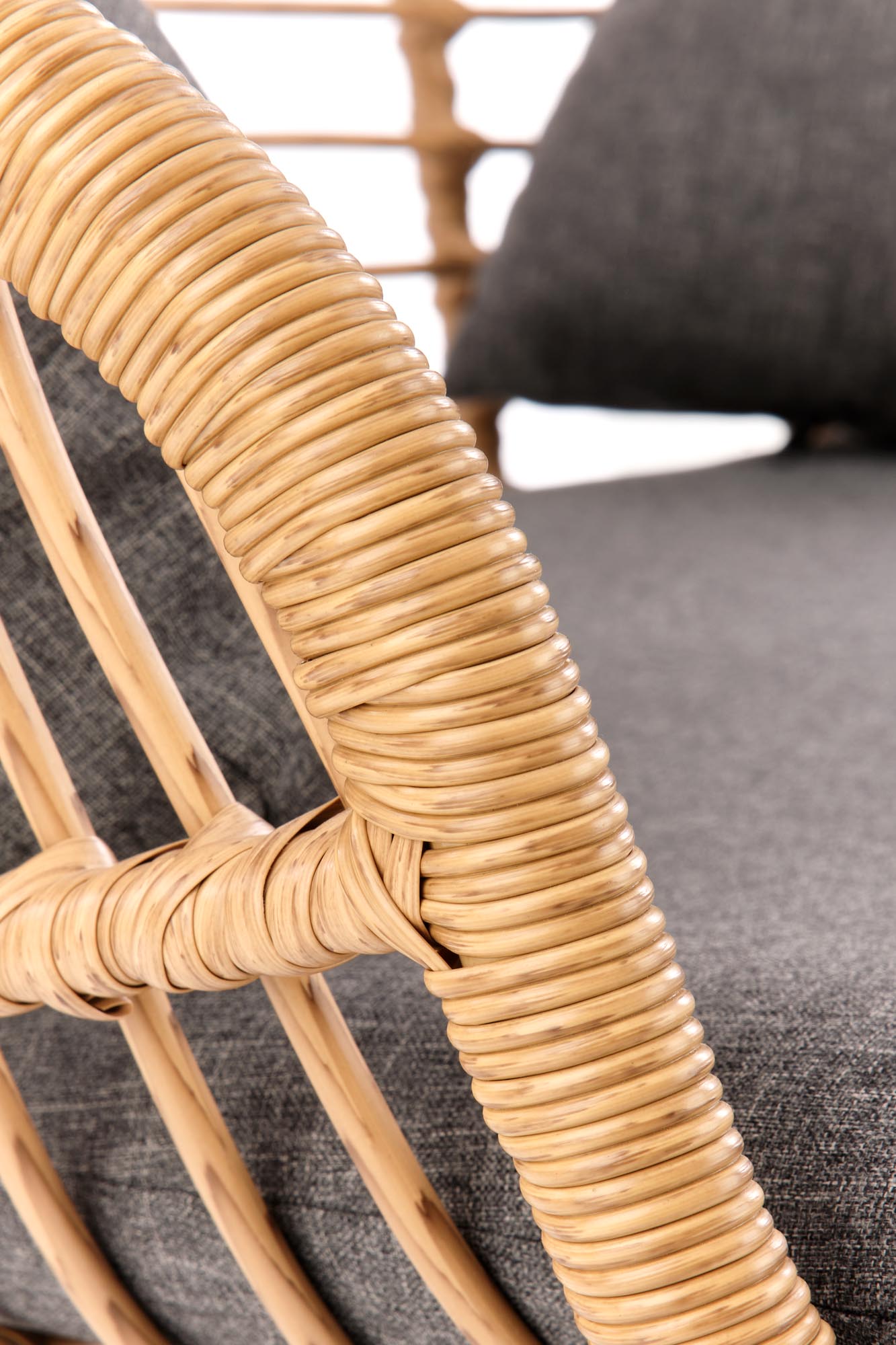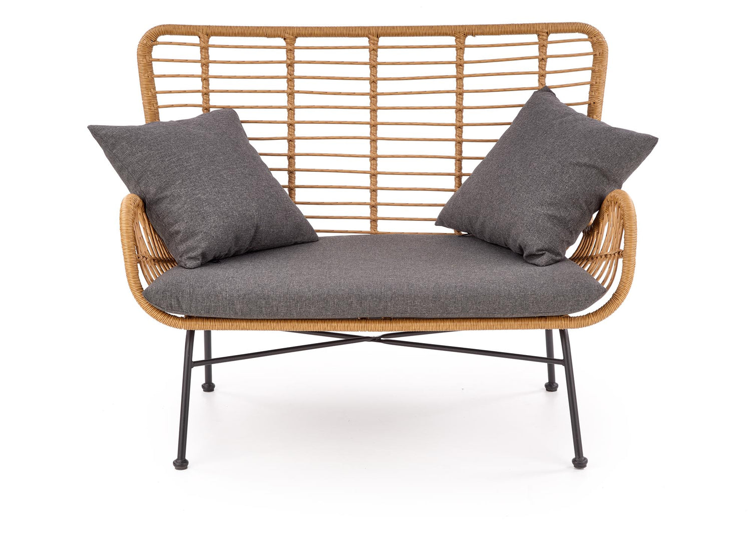 dimensions: 96/120/70/45 cm, material: synthetic rattan / cloth / powder coated steel, color: natural / grey