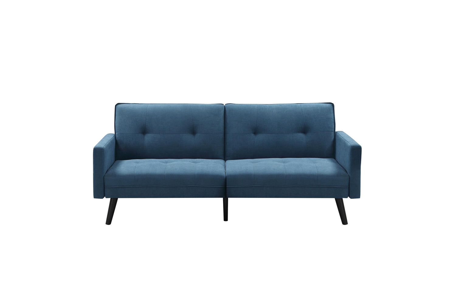 dimensions: 200/86-102/83-42 cm, ottoman - 97/71/42 cm,folding sofa with ottoman, material: cloth / solid wood, color: blue