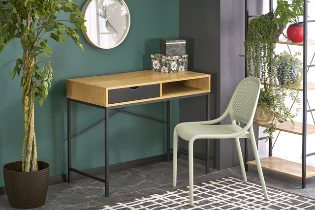 dimensions: 95/48/76 cm, material: laminated chipboard - melamine / powder coated steel, color: golden oak / black