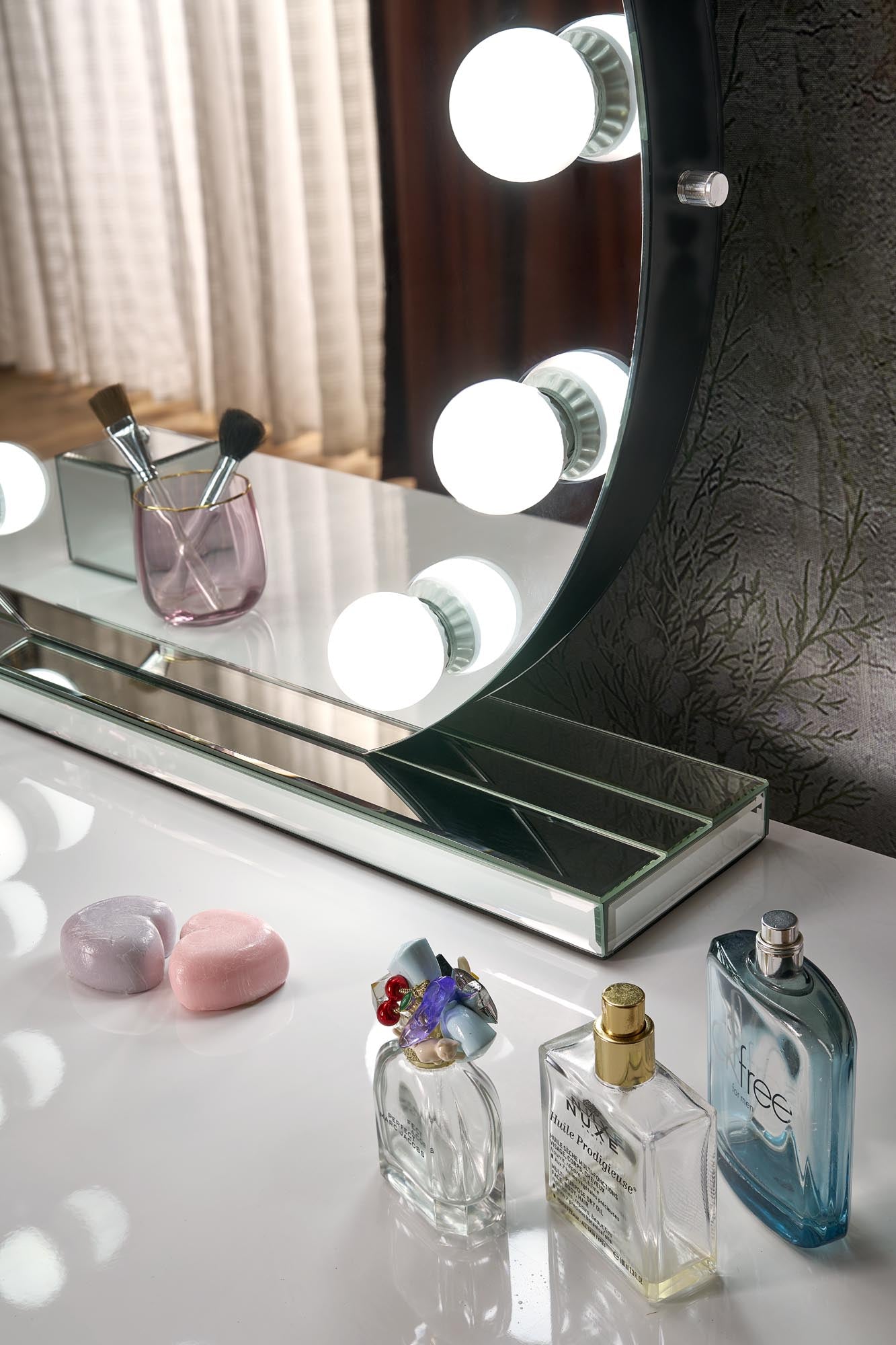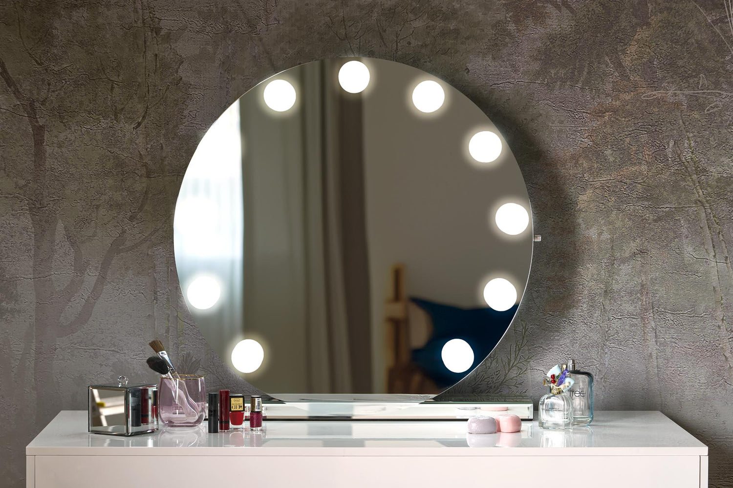 table mirror, dimensions: 70/70/6,5 cm, material: wthout frame / base - MDF board / LED / mirror, color: silver