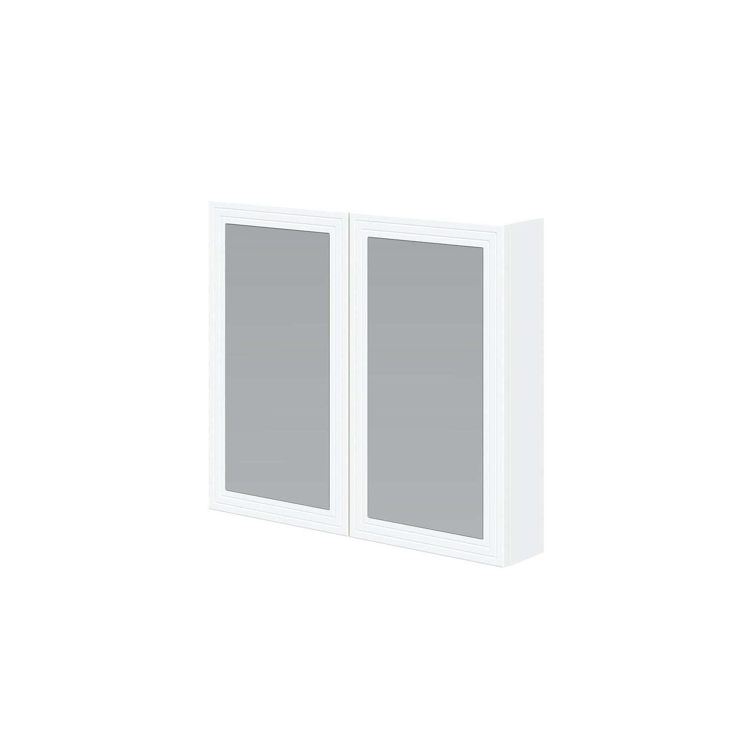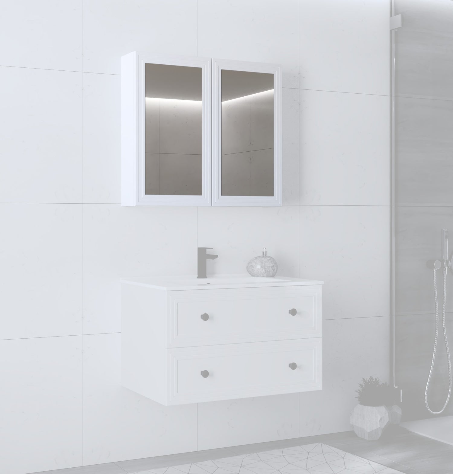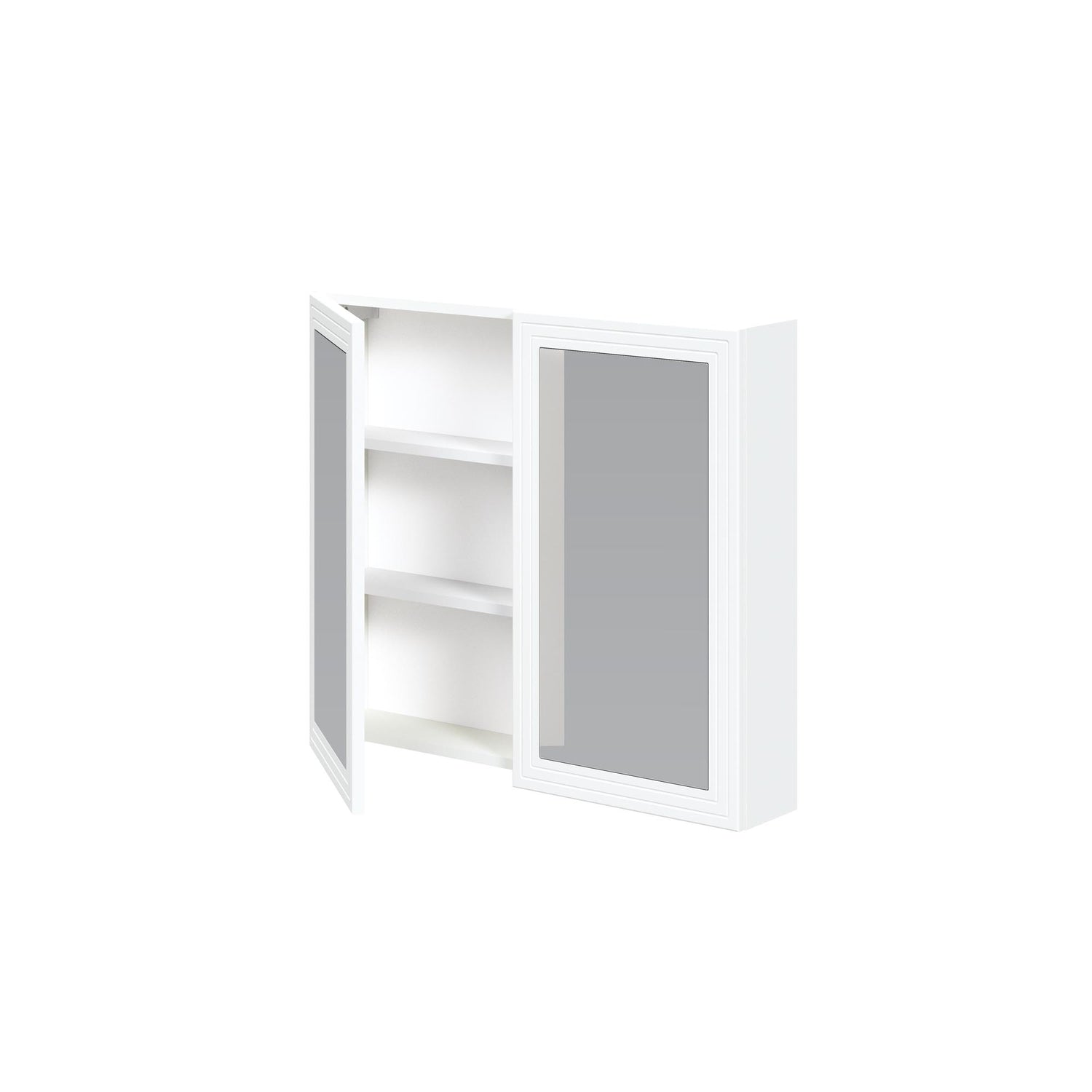 mirror cabinet, dimensions: 80/15/70 cm, material: body - laminated chipboard, front - laminated MDF / glass, soft close hangers and slides, color: white matt