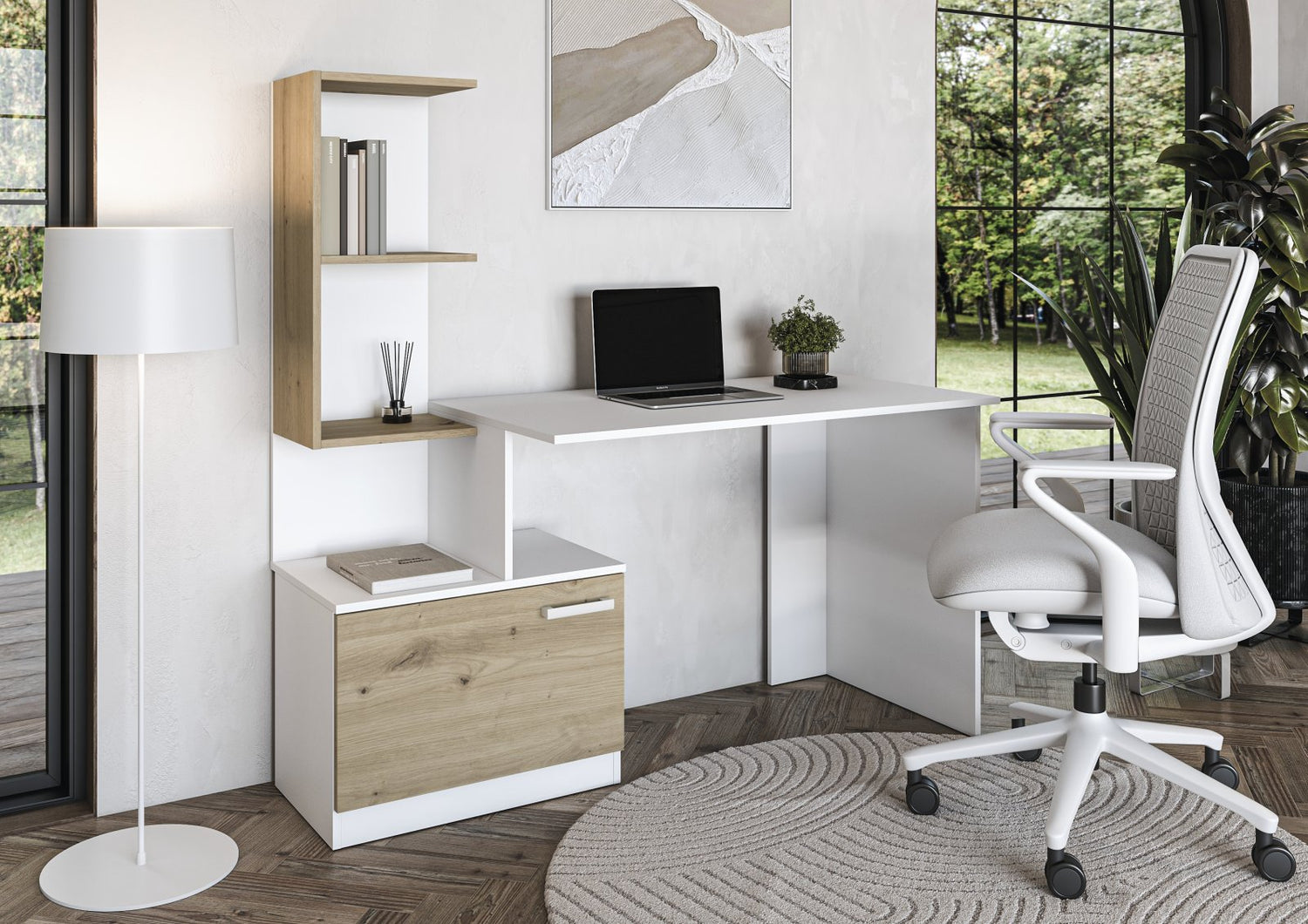 dimensions: 144/60/142 cm, material: laminated chipboard, colors: white / artisan oak