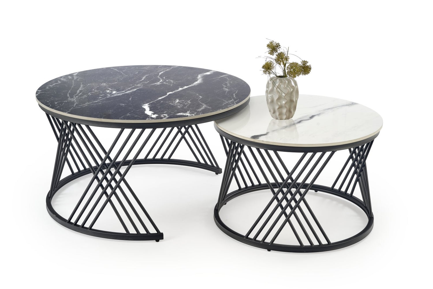 dimensions: fi60/40 cm and fi80/46 cm, material: sintered stone / powder coated steel, color: black marble (big) / white marble (small) / black